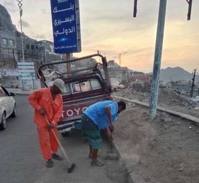 تستمر فرق النظافة في العمل في شوارع وأحياء مديرية المعلا ضمن خطة المتفق عليها بإشراف ومتابعة قيادة السلطة المحلية م المعلا وصندوق النظافة والتحسين في العاصمة عدن.