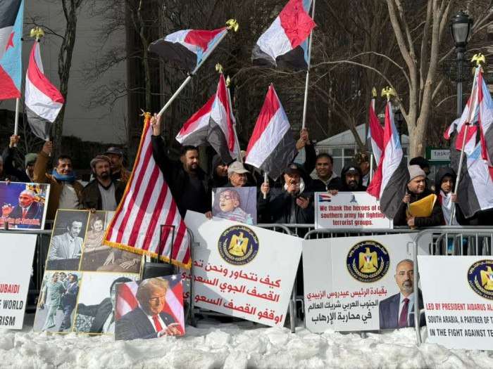 نظم أبناء الجنوب اليوم الخميس، وقفة احتجاجية في أمريكا أمام مبنى الأمم المتحدة بمدينة نيويورك للتنديد بجرائم القوات المدعومة سعودياً في حضرموت وشبوة