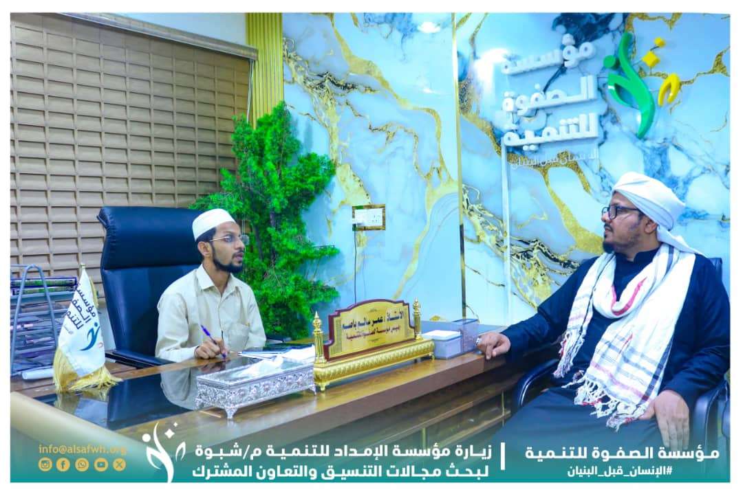 وبحث اللقاء آفاق التعاون والتنسيق المشترك بين مؤسستي الصفوة والإمداد في عدد من المجالات، أبرزها دعم القطاع التعليمي، وتنفيذ المشاريع الإغاثية، وبرامج التمكين الاقتصادي، إضافة إلى تبادل الخبرات وبناء القدرات المؤسسية بما يسهم في تعزيز التنمية المستدامة وخدمة الفئات الأكثر احتياجًا.