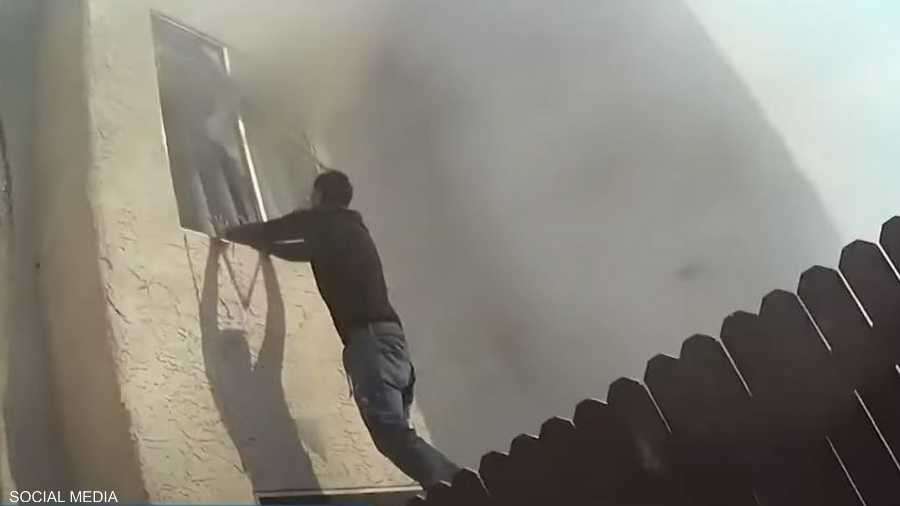 ووضع الشاب الذي لم يكشف عن اسمه حياته على المحك عندما قرر تسلق نافذة المنزل المحترق، وإدخال نصف جسده للداخل، لإخراج طفلين كانا بإحدى الغرف المشتعلة بألسنة اللهب.