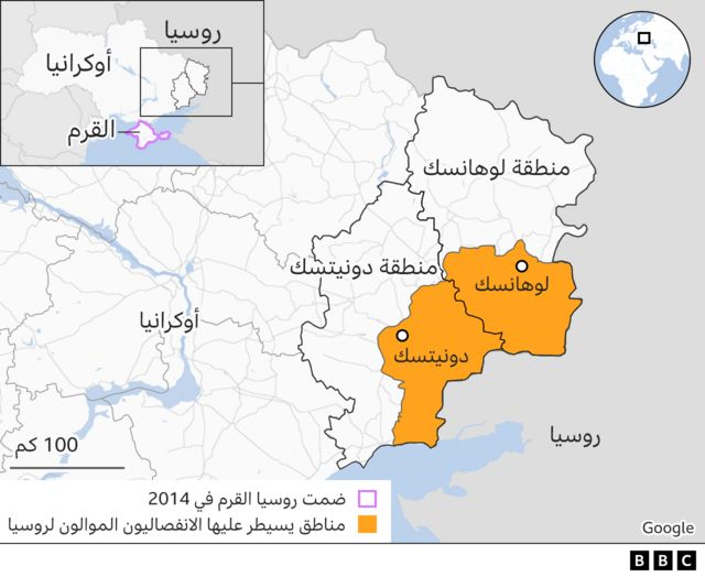 وتغطي "الجمهوريات الشعبية" التي نصبت نفسها بنفسها أكثر من ثلث مناطق لوهانسك ودونيتسك بقليل، لكن الانفصاليين يطمعون في الباقي أيضا.قال الرئيس الروسي: "لقد اعترفنا بهم، وهذا يعني أننا اعترفنا بجميع وثائق تأسيسهم". لم يكتف بوتين بالاعتراف بهم، بل وقع مرسوما يسمح للقوات الروسية بالتمركز هناك بشكل علني وبإنشاء قواعد عسكرية أيضا.
