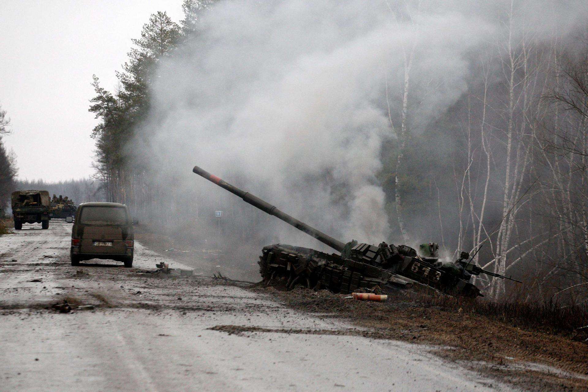 وأظهر مقطع فيديو نشرته حسابات أوكرانية على شبكات التواصل الاجتماعي مدرّعة روسية تحترق في وسط المدينة.