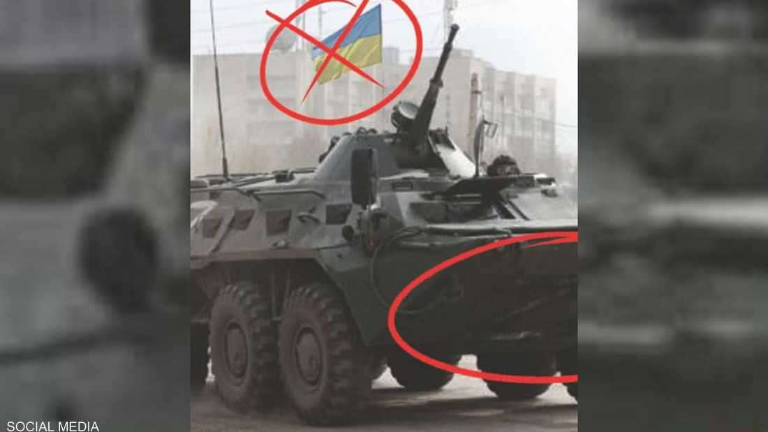ونشرت وزارة الدفاع الأوكرانية على حسابها في "تويتر"، صورة قالت إنها لمركبة روسية ترفع علم أوكرانيا عليها بغرض التمويه.