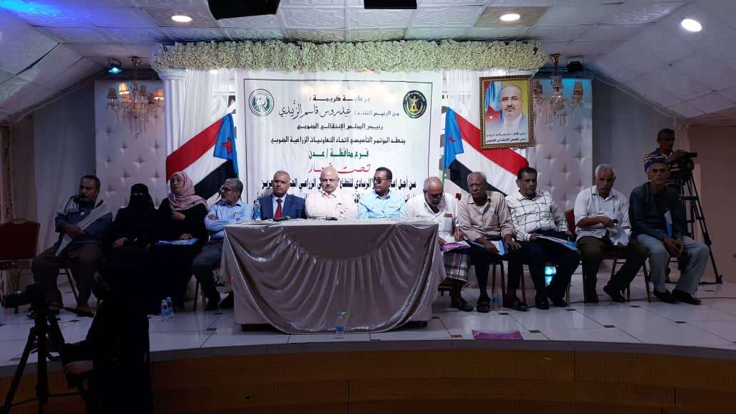 برعاية الرئيس القائد عيدروس الزبيدي رئيس المجلس الانتقالي الجنوبي انعقاد المؤتمر التاسيسي للاتحاد التعاونيات الزراعية الجنوبي فرع محافظة عدن تحت شعار من أجل إعادة الدور الريادي للقطاع التعاوني الزراعي الجنوبي وتعزيز اسهاماته في تحسين وزيادة الإنتاج وتحقيق الأمن الغذائي والتنمية المستدامة بحضور المهندس صالح الأمير رئيس اتحاد التعاونيات الزراعية الجنوبي والاخ عصام عبده نائب رئيس القيادة المحلية للمجلس الانتقالي الجنوبي والاخ محمد متنى رئيس اللجنة التحضرية لجمعيات التعاونيات الزراعية والاخت اشتياق محمد سعد رئيسة دائرة المرأة والاخ عبدالسلام السقاف القائم بأعمال مدير مكتب الشؤون الاجتماعية والعمل والاخ عصام وادي مدير عام اتحاد الجمعيات في الشؤون الاجتماعية والعمل والاخ ردفان الجبل رئيس اللجنة التحضرية لجمعيات التعاونيات السكنية بالعاصمة عدن.