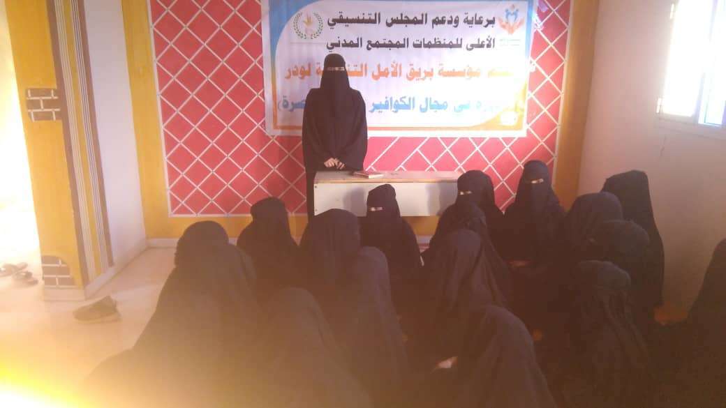 دشنت مؤسسة بريق الأمل التنموية بمديرية اليوم الأربعاء في منطقة أمصرة فعاليات الدورة التدريبية في مجال الكوافير لعدد 20 متدربة والتي تقام برعاية المجلس التنسيقي الأعلى لمنظمات المجتمع المدني.