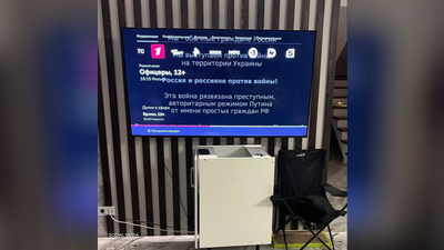 وأظهرت الصور المعروضة، عمليات قصف في أوكرانيا، وفي الختام، قام القراصنة بعرض رسالة تقول إن المواطنين الروس العاديين يرفضون الحرب.