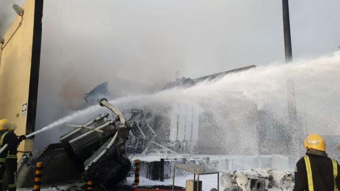 بالصور.. إخماد حريق محطة كهرباء صامطة بالسعودية