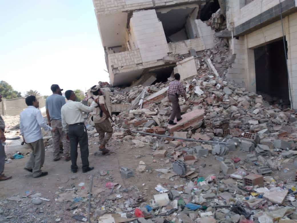 مأمور خور مكسر يتفقد المبنى المنهار من عمارة الرويشان بالمديرية