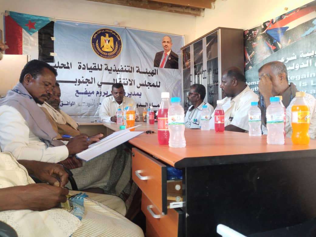 عقدت الهيئة التنفيذية للمجلس الانتقالي الجنوبي بمديرية بروم ميفع اجتماعها الدوري الثاني لشهر مارس بمقر القيادة المحلية برئاسة الاخ/ناصر سالمين التميمي رئيس الهيئة التنفيذية .