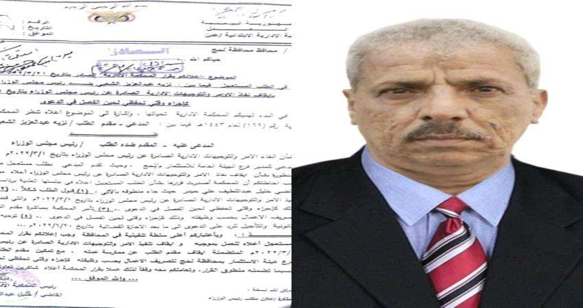 القضاء يأمر بسرعة إعادة مدير عام الاستثمار في لحج الى عمله