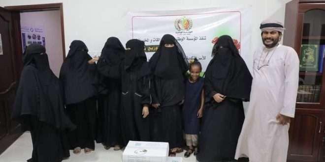 المؤسسة الوطنية لمكافحة التدخين والقات والمخدرات تواصل توزيع المعونات للأسر المنكوبة والنازحة واللاجئة