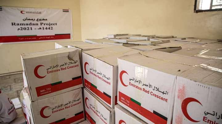 الهلال الأحمر الإماراتي يواصل توزيع مساعدات رمضان في حضرموت
