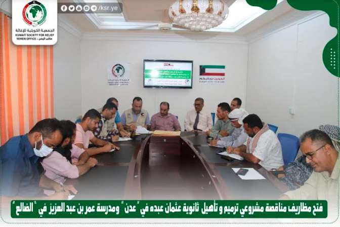فتح مظاريف مناقصة مشاريع تعليمية في محافظات عدن والضالع