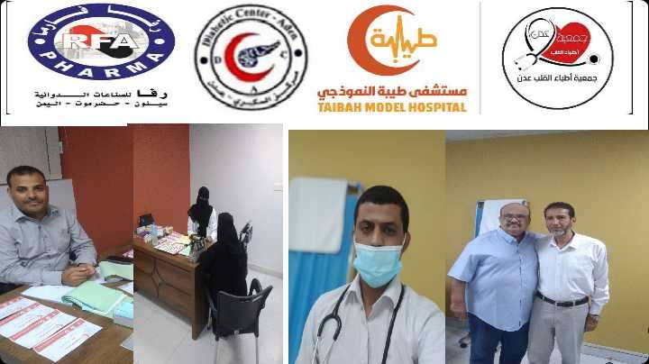 و قد تفقد د محمد السعدي رئيس جمعية أطباء القلب عدن عيادات المخيم و قدم الشكر و الثناء لفريق العمل من أطباء المخيم و فريق العمل الطبي و التمريضي و الفني من م طيبة النموذجي و فريق شركة رفا فارما.