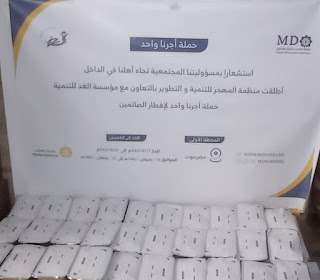دشنت مؤسسةالغد للتنمية والتطوير مع منظمة المهجر للتنمية والتطوير بمدينة المكلا حملة أجرنا واحد لإفطار الصائم للأسر المتعففة بحضرموت والمحافظات اليمنية المحررة . وتأتي الحملة الرمضانية بتمويل من منظمة المهجر للتنمية والتطوير وتنفيذ مؤسسة الغد للتنمية والتطوير وتتضمن الحملة توفير خمسمائة وجبة لكل المحافظات المحررة وابتدأت في حضرموت توزيع مائة وجبة على مائة وفي اليوم الثاني من الحملة المائة الثانية على مائتي أسرة متعففة .