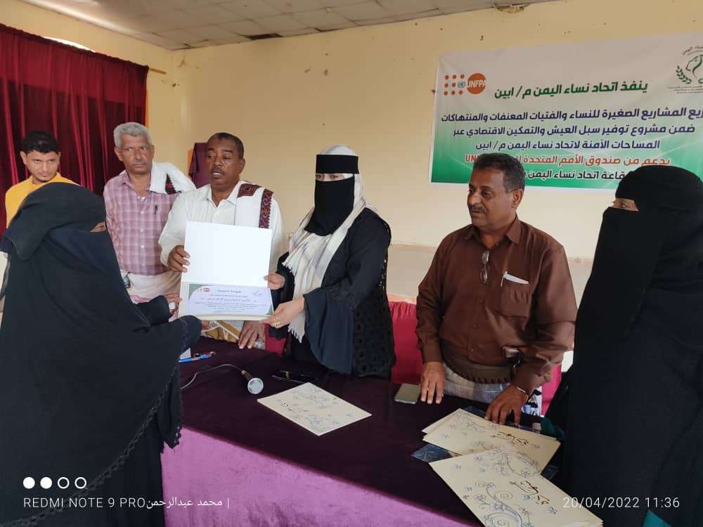 اتحاد نساء أبين ينفذ توزيع المشاريع الصغيرة للنساء والفتيات بتمويل من صندوق الأمم المتحدة للسكان