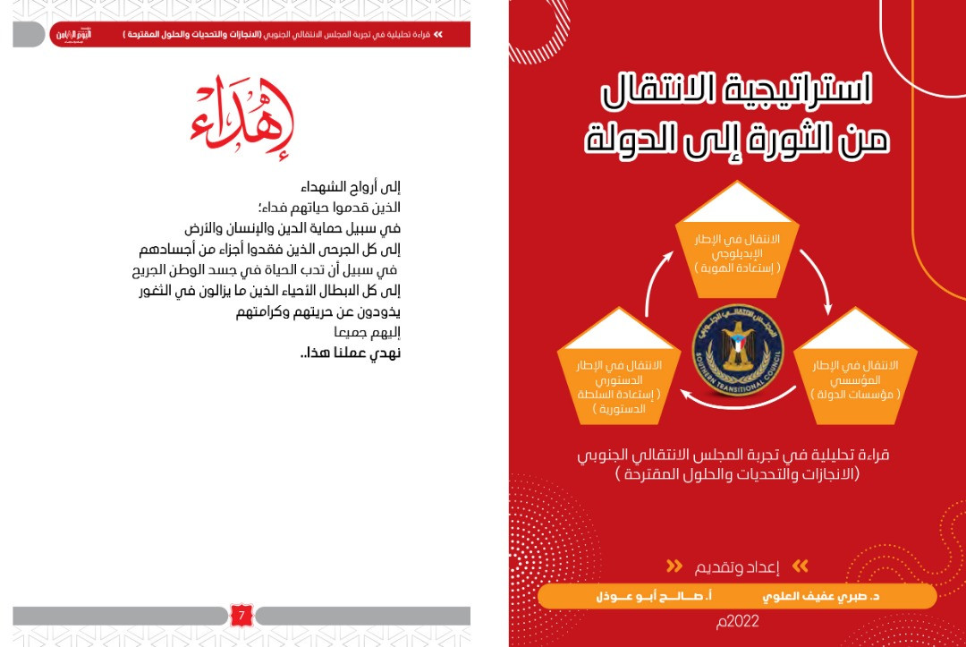 أصدرت مؤسسة اليوم الثامن للإعلام والدراسات، دراسة تحليلية لتجربة المجلس الانتقالي الجنوبي، حملت عنوان "استراتيجية الانتقال من الثورة إلى الدولة، مستعرضة الإنجازات والتحديات، واضعة جملة من الحلول المقترحة. والكتاب هو قراءة تحليلية في تجربة المجلس الانتقالي الجنوبي منذ تأسيسه في الرابع من مايو العام 2017م.