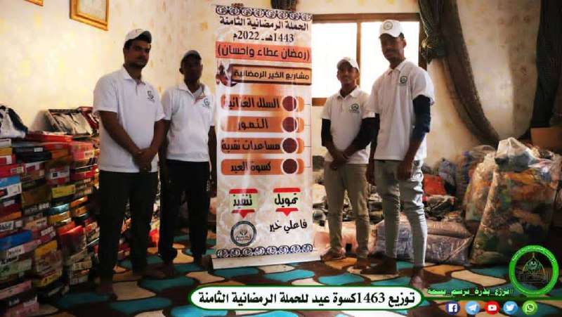 حيث تم توزيع أكثر من 1463 كسوة عيدية من البدلات والملابس الولادية والبناتية والنسائية على مستوى مديريات العاصمة عدن وعدد من مناطق المحافظات المجاورة. استهدف توزيعها قسم الأيتام والكفالات بمؤسسة الهجرة من الأطفال الذين لا يتجاوز أعمارهم أقل من 15 سنة من مناطق محافظات (عدن، أبين، لحج)،