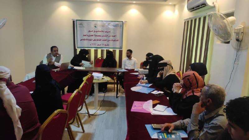 نظمت مؤسسة تعايش للتنمية بالعاصمة عدن، يوم الأربعاء، جلسةً تدريبية للإعلاميين والناشطين الحقوقيين حول "الحد من التنمر ووصمة الخزي والعار للناجيات من العنف القائم على النوع الاجتماعي".