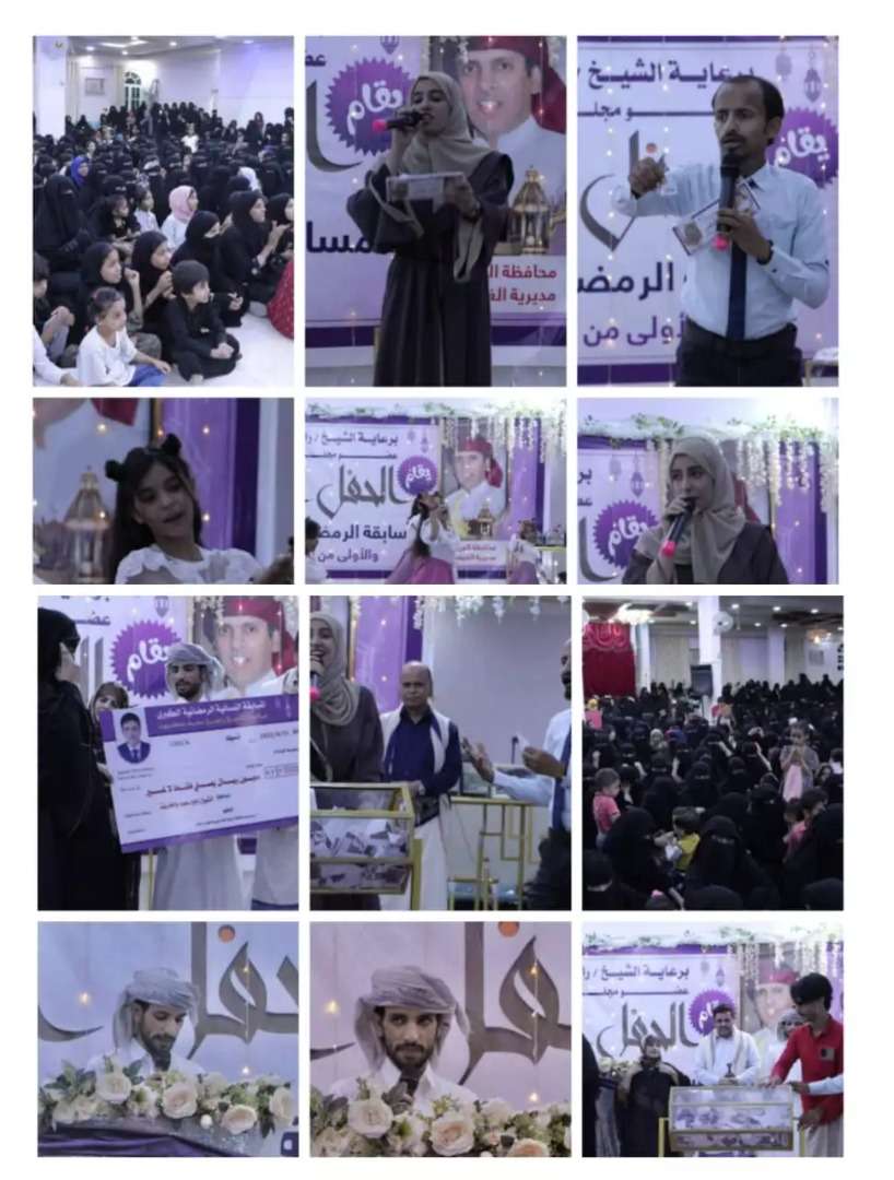 اختتمت مساء الخميس فعاليات المسابقة الرمضانية الكبرى للقطاع النسوي بالمهرة برعاية الشيخ راجح سعيد باكريت عضو مجلس الشورى وسط حضور واسع من القطاع النسوي والمشاركات في المسابقة من مختلف مديريات المحافظة.