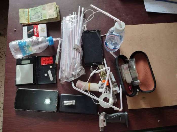 وضبطت القوة الأمنية بحوزتهما كمية من مادة الشبو المخدر وميزان إلكتروني وأدوات لتعاطي المخدرات.