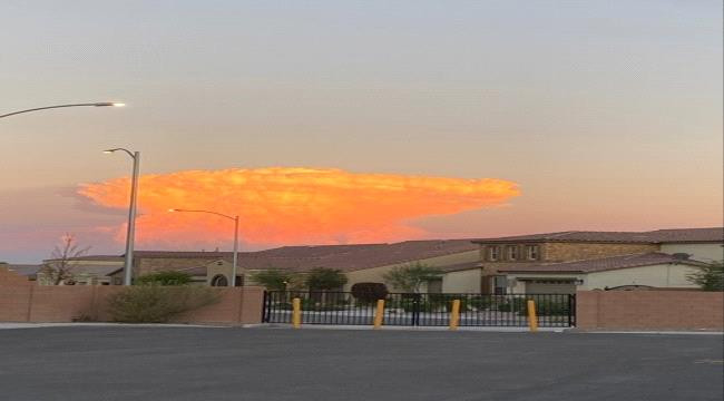 تداول رواد موقع التواصل الاجتماعي "تويتر" مجموعة من الصور لسحابة ضخمة على شكل فطر عيش الغراب التي تحصل عادة بعد الانفجار النووي، في سماء مدينة لاس فيغاس بولاية نيفادا الأمريكية.