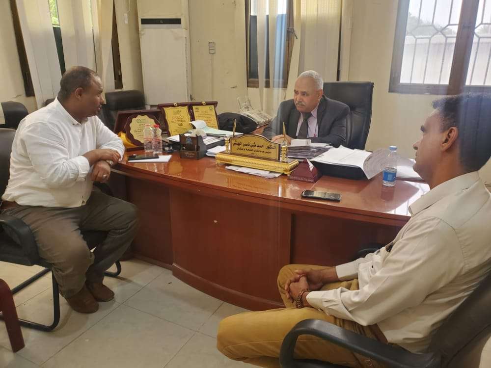 أستقبل مدير عام مكتب الصحة العامة والسكان بمحافظة عدن د.احمد مثنى البيشي صباح اليوم الخميس بمكتبة بالعاصمة عدن مدير عام مكتب الصحة العامة والسكان حضرموت الساحل د. محمد صالح الجحمي والمرافق له عمر باجبار مدير دائره المنظمات منسق البنك الدولي حضرموت الساحل.