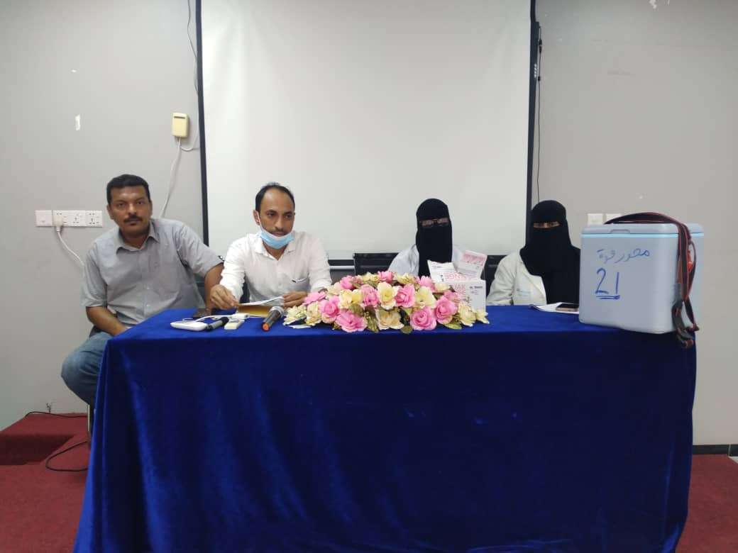 فريق التحصين لكوفيد 19 ينفذون جرعة لقاح جونسون للعاملين الصحيين بالمختبرات المركزية بالمكلا