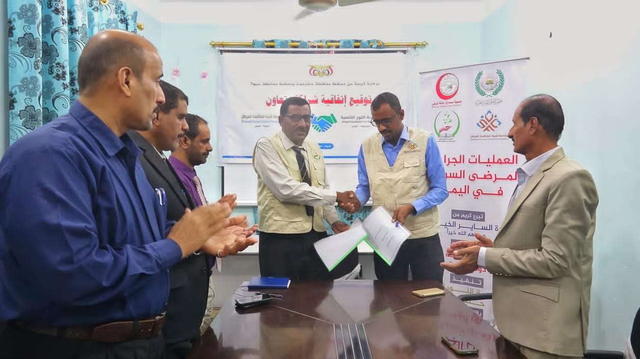 برعاية كريمة من محافظ محافظة شبوة ومحافظ محافظة حضرموت تم صباح اليوم الاثنين توقيع اتفاقية شراكة وتعاون بين مؤسسة شبوة لمكافحة السرطان ومؤسسة النور للتنمية في عاصمة محافظة شبوة عتق