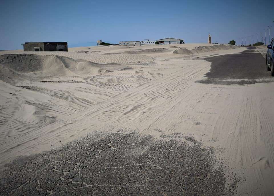 ولفت تحرص المؤسسة الهامة للطرق والجسور الادارة العامة على القيام بدورها في ازالة وازاحة الرمال بتمويل صندوق صيانة الطرق والجسور . لافتا ان وضع الطريق كارثي بسبب اجتياح الكثبان الرملية لها.