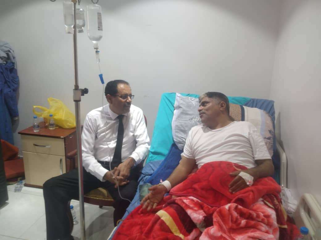 الشيخ بن عبودان يزور العميد المحمدي للإطمئنان على صحته بعد تعرضه لمحاولة إغتيال بالمكلا