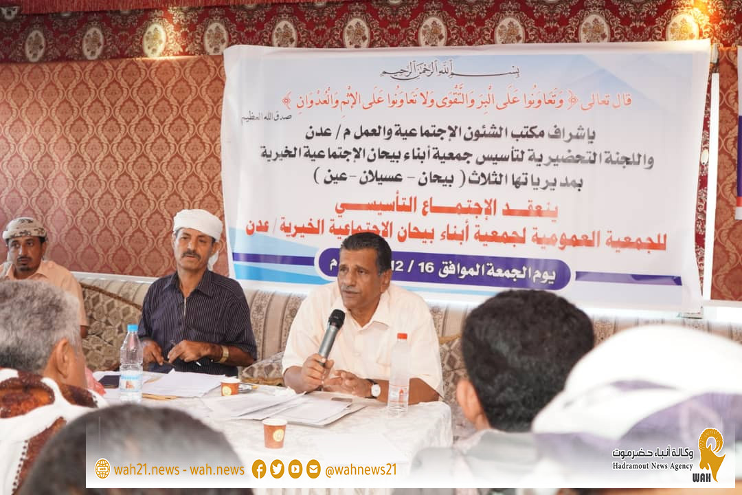 أشهرت في العاصمة الجنوبية عدن، جمعية بيحان الخيرية التنموية بحضور حكومي من مكتب الشؤون الاجتماعية والعمل، وكذا شخصيات قبلية واجتماعية واسعة، ومن رجال الاعمال، واختارت العميد محمد علوي هادي رئيسا للجمعية، والتي تهدف إلى