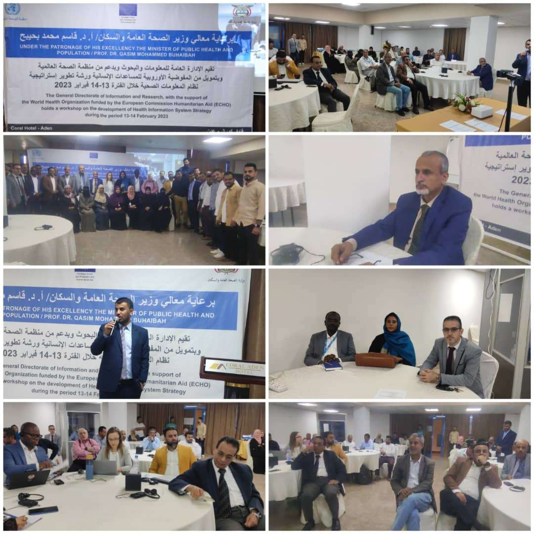 دشنت الادارة العامة للمعلومات والبحوث بوزارة الصحة العامة والسكان ، وبدعم من منظمة الصحة العالمية وبتمويل من من المفوضية الاوربية للمساعدات الانسانية، اليوم بالعاصمة عدن ورشة تطوير استراتيجية نظام المعلومات الصحية خلال الفترة من 13 - 14 فبراير الجاري ،
