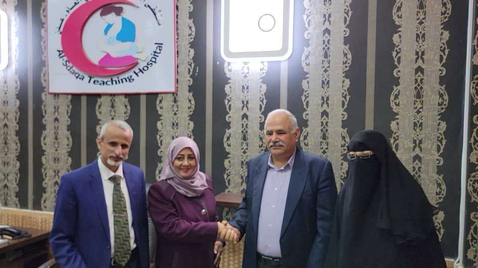 وحضر اثناء التسلم للمدير العام الجديد مستشفى الصداقة التعليمي العام د.رجاء احمد علي مسعد