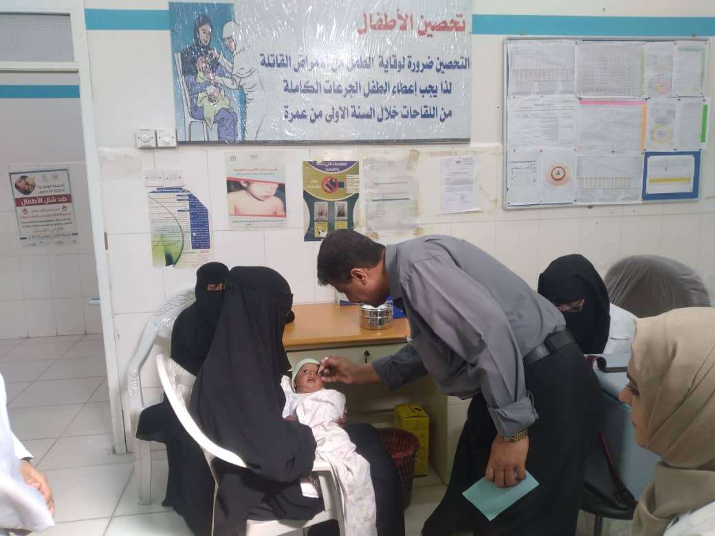 دشن مكتب الصحة والسكان مديرية المعلا، برئاسة د خالد عبدالباقي فارع، مدير المكتب في المعلا، صباح اليوم الاحد. الحملة الوطنية للتحصين ضد شلل الاطفال، في مديرية المعلا.