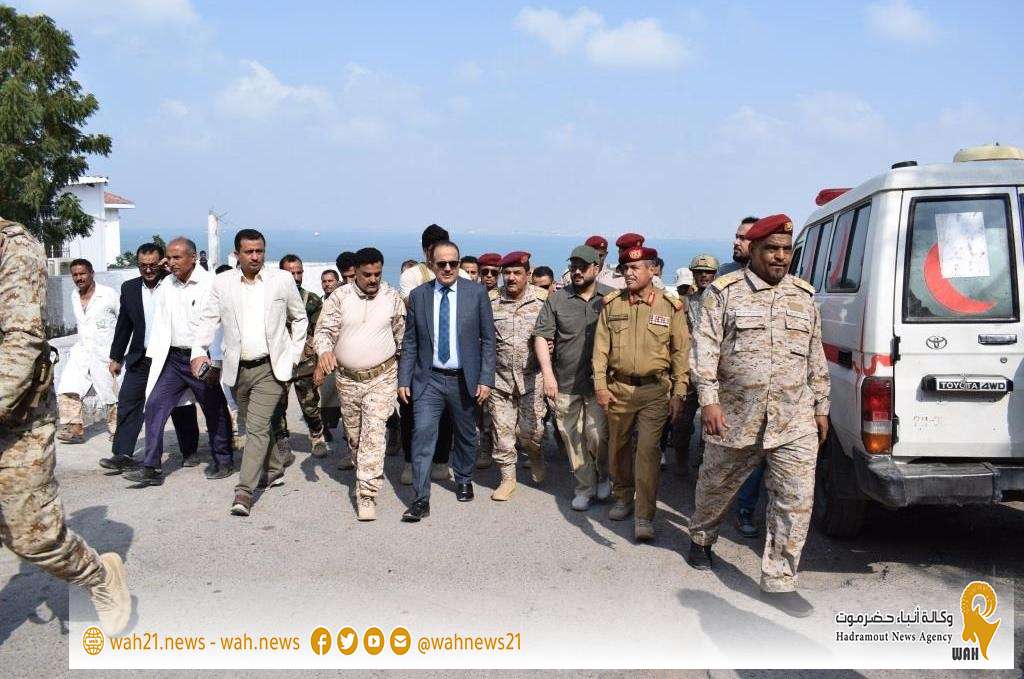 قام وزير الدفاع الفريق الركن / محسن الداعري صباح اليوم بمعية وزير الصحة العامة والسكان الدكتور/ قاسم بحيبح ووزير الاشغال العامة والطرق المهندس / سالم محمد الحريزي بزيارة تفقدية لمستشفى باصهيب العسكري ،اطلعوا.خلالها على اعمال التأهيل والترميم التي شهدتها المستشفى والتوسعات والمباني الجديدة الاضافية التي اقيمت والطفرة التي شهدتها المستشفى منذ مابعد حرب 2015 واستمع وزير الدفاع ومرافقوه الى شرح مفصل من قبل رئيس الهيئة العسكرية للخدمات الطبية الدكتور/ عارف الداعري ، ونائب دائرة التموين وقائد القاعدة الادارية العميد الركن / علي محمد الكود عن اعمال التاهيل والترميم والتحديثات التي شهدتها المستشفى في مختلف المجالات، سواء من حيث التوسع في المباني الاضافية او توفير المعدات والاجهزة الطبية اللازمة، وكذا على مستوى الارتقاء بالخدمات الصحية.