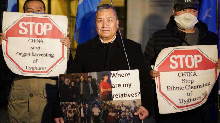 مظاهرة معارضة لاولمبياد بكين الشتوية في لندن بسبب انتهاك حقوق الإيغور