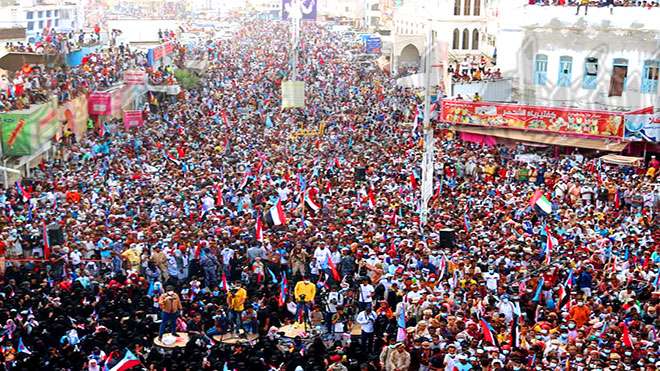 توافد عشرات الالاف في ساحة الحرية بالمكلا تأييداً للهبة الحضرمية الثانية