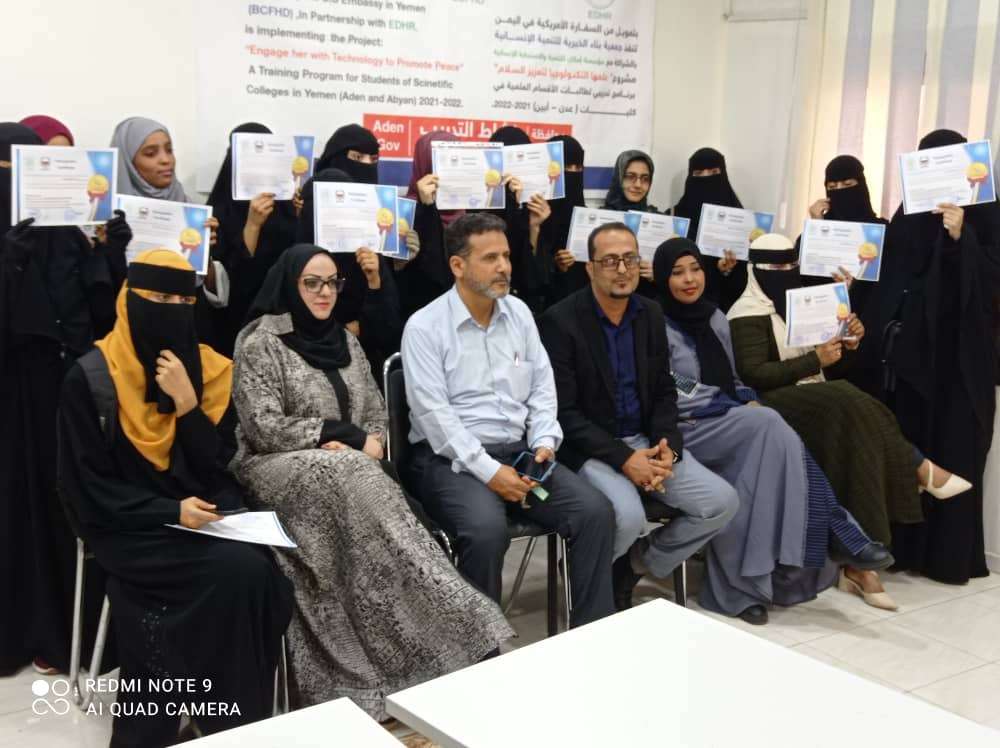 اختتام الدورة التدريبية لطالبات جامعة عدن بعنوان"علمها التكنلوجيا لتعزيز السلام"