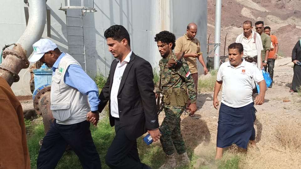 وفي الزيارة، استمع الدكتور الشوبجي من مدير المياه بالمديرية، المهندس عبدالله محمد زين، إلى شرح حول أعمال الصيانة والتنظيف للخزان رقم ( 1 ) البالغ سعته التخزينية مليون لتراً، بالإضافة إلى تلحيم الخزان من قبل شركة مصافي عدن، بعد تعرضه ثقب مفاجئ له.