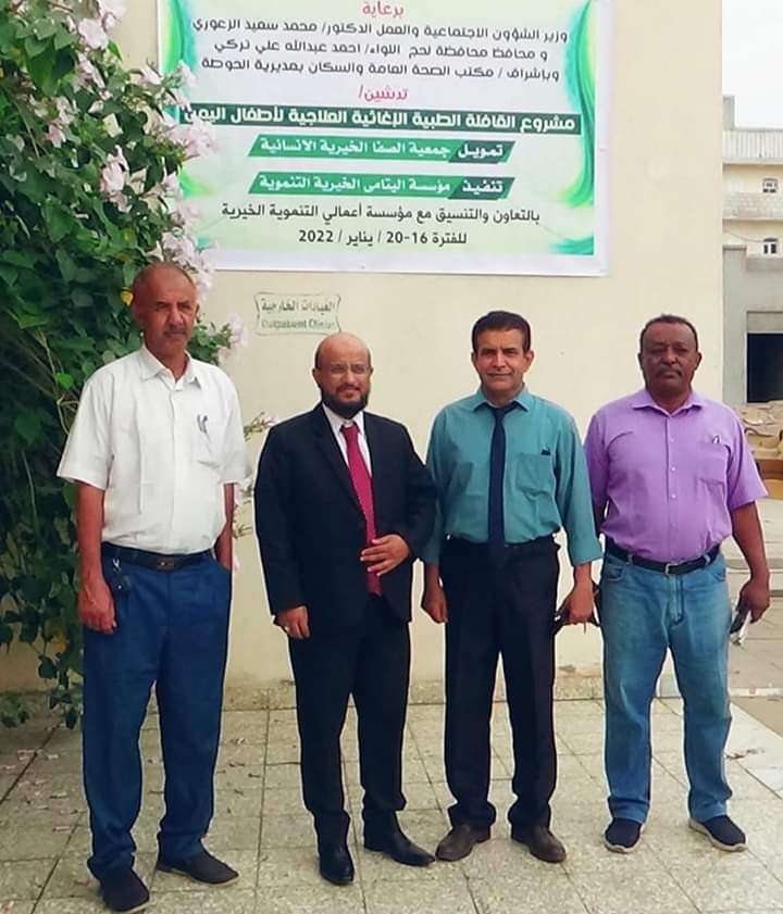 برعاية كريمة من قبل معالي الدكتور محمد سعيد الزعوري وزير الشؤون الاجتماعية والعمل في حكومة المناصفة دُشنت صباح اليوم في مستشفى ابن خلدون العام بلحج القافلة الطبية الإغاثية العاجلة ، بدعم من جمعية الصفا الإنسانية في دولة الكويت وتنفيذ مؤسسة اليتامى الخيرية التنموية وبالتعاون والتنسيق مع مؤسسة أعمالي التنموية الخيرية .