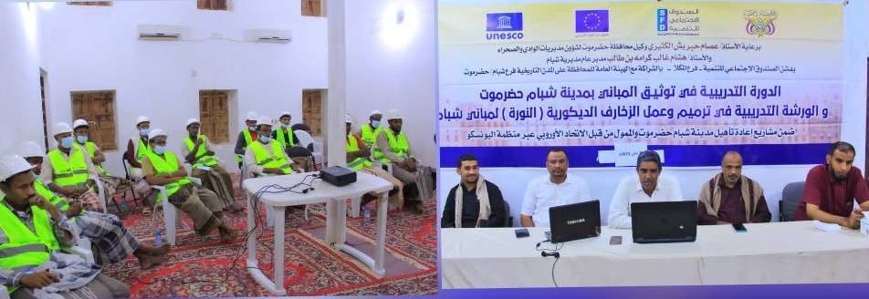 بدأت صباح اليوم الخميس بمدينة شبام الورشة التدريبية في ترميم وعمل الزخارف الديكورية (النورة) لمباني شبام والتي يقيمها الصندوق الاجتماعي للتنمية فرع المكلا بالشراكة مع الهيئة العامة للمحافظة على المدن التاريخية بشبام ضمن مشروع إعادة تأهيل مدينة شبام حضرموت والممول من قبل الاتحاد الأوروبي عبر منظمة اليونسكو وبحضور أ/ خالد باجندوح رئيس لجنة التخطيط والتنمية بالسلطة المحلية بشبام الذي أشاد بالجهود التي تبذل في إعادة تأهيل المدينة وحث المشاركين على التركيز والدقة مبيناً أهمية التعامل مع مباني تاريخية والأثر الموجود فيها من زخارف ونقوش فنيه هامه وأشار مدير الهيئة العامة للمحافظة على المدن التاريخية أ/حسن عيديد على أن الدورة التدريبية تهدف إلى تأهيل فنيين ومعالمة لي الزخارف الديكورية مؤكدا على أهمية دورهم القادم في المشاريع الخاصة بصيانة المدينة لترميم الزخارف والنقوش في مباني شبام القديمة.