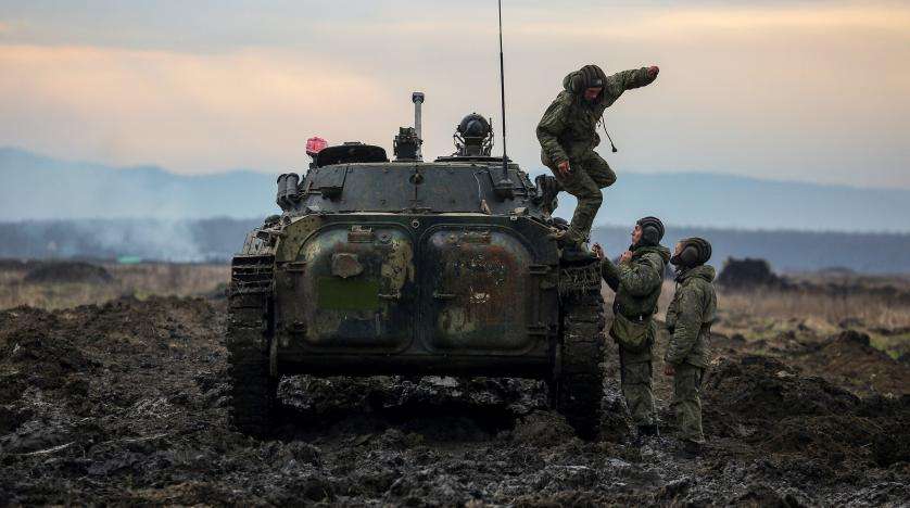وتحشد روسيا منذ أكتوبر (تشرين الأول) أكثر من 100 ألف جندي وعتاداً عسكرياً إضافة إلى قوات دعم على حدودها مع أوكرانيا ومؤخراً في بيلاروسيا التي لها أيضاً حدود مشتركة مع أوكرانيا شمالاً.