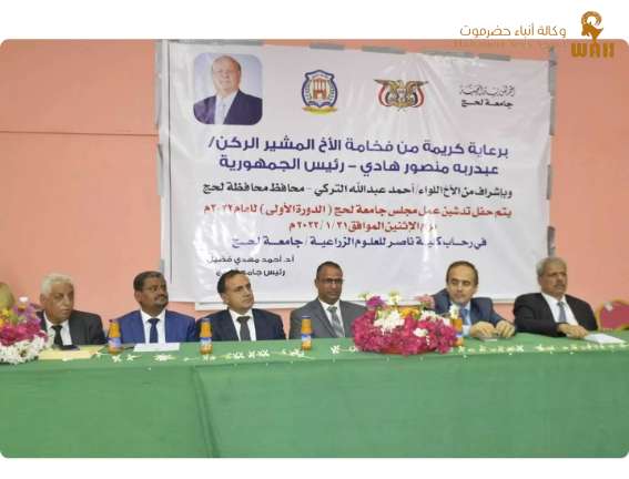 برعاية كريمة من فخامة الأخ المشير الركن عبد ربه منصور هادي رئيس الجمهورية، وبإشراف مباشر من الأخ اللواء الركن أحمد عبد الله التركي محافظ محافظة لحج، تم صباح يومنا هذا الاثنين الموافق 31 يناير 2022م، تدشين عمل مجلس جامعة لحج في أولى دوراته، وذلك في رحاب كلية ناصر للعلوم الزراعية بقاعة السلطان علي عبد الكريم العبدلي.