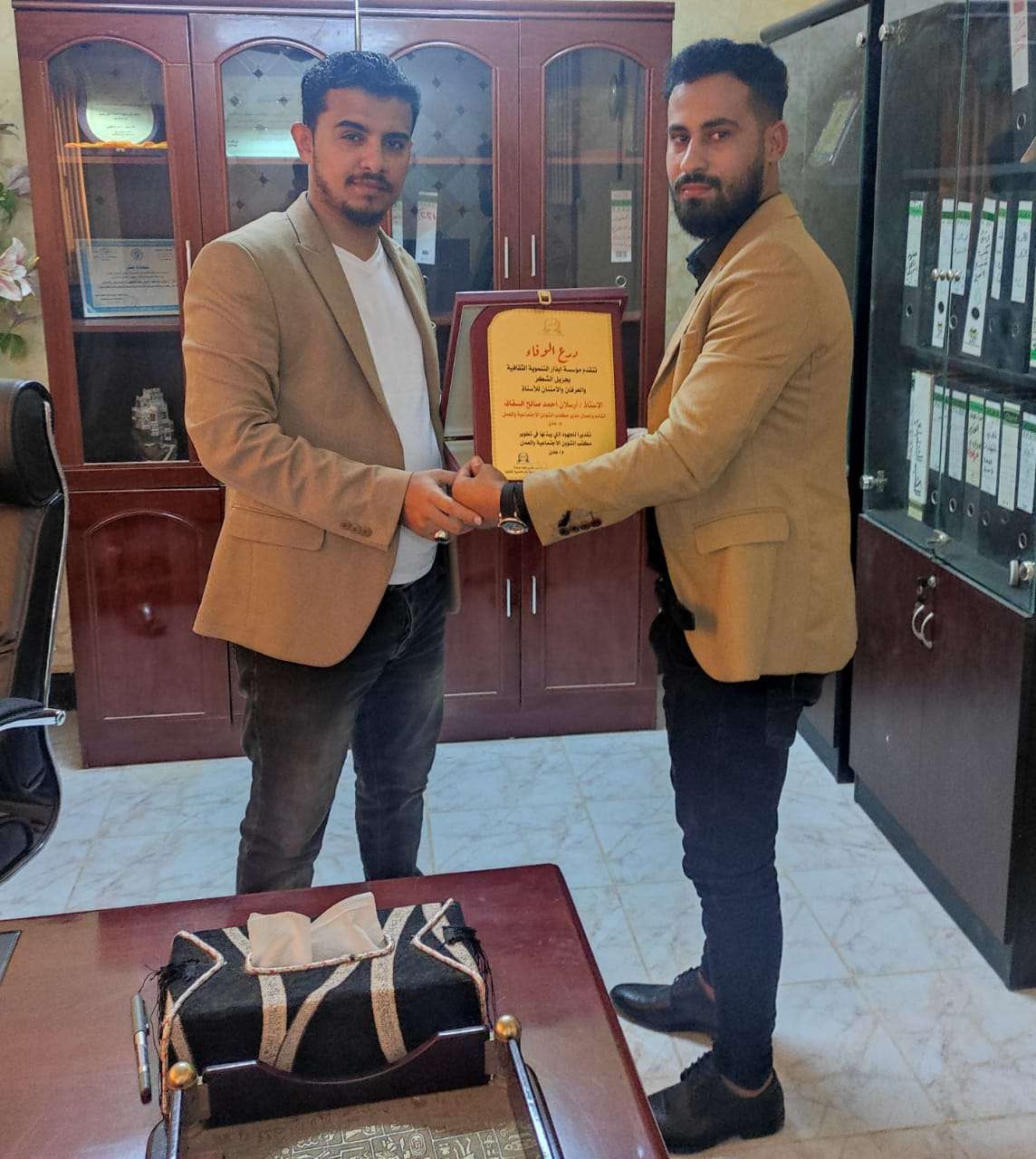 وأشاد السقاف بالجهود المبذولة من المؤسسه في تنمية قدرات ومهارات الشباب وبدوره قدم رئيس مؤسسة ابذار التنموية الثقافية درع الوفاء والشكر للأستاذ أرسلان السقاف القائم بأعمال المدير العام لمكتب وزارة الشؤون الاجتماعية والعمل في العاصمة عدن نظرا لجهوده المبذولة في دعم أنشطة ومشاريع منظمات المجتمع المدني المستدامة للمجتمع بالعاصمة عدن وفي الأخير شكر الاستاذ أرسلان السقاف المؤسسة على هذا التكريم مؤكدا اهتمام محافظ العاصمة عدن الأستاذ أحمد حامد لملس ووزير الشؤون الاجتماعية والعمل د محمد سعيد الزعوري بدعم الشباب وأنشطة منظمات المجتمع المدني الفاعلة لخلق شراكه عمل بين السلطه المحلية بالعاصمة عدن ومنظمات المجتمع المدني الفاعلة لتحقيق التنمية المستدامة للمجتمع بالعاصمة عدن.