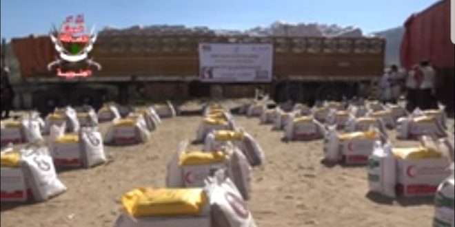 الهلال الأحمر الإماراتي يسير قافلة مساعدات غذائية لذوي الدخل المحدود في مديرية حريب بمأرب