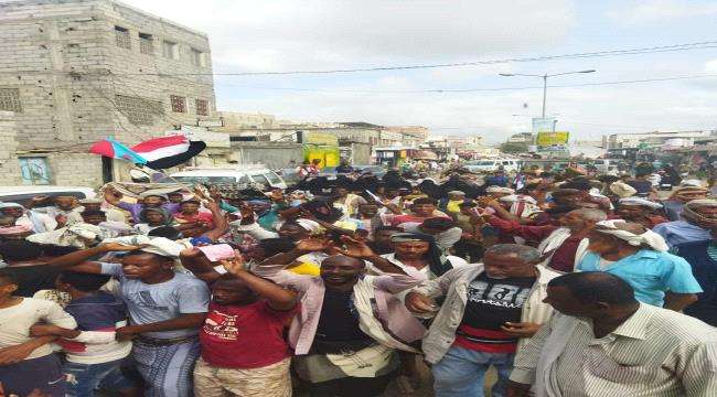 في مظاهرة شعبية حاشدة..جماهير خنفر بأبين يطالبون بإقالة "المنصري"