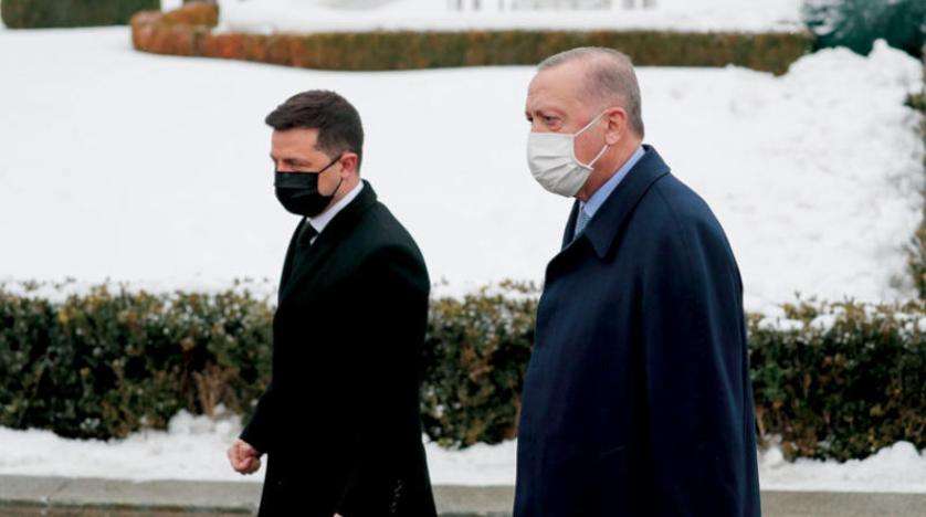 ولهذا يقوم إردوغان بوساطة بين حليفه الأوكراني وروسيا لتجنب نزاع قد يلحق ضررا ببلده أيضاً، وذلك خلال زيارته التي بدأها لكييف أمس الخميس. ويشدد إردوغان الذي يتولى الحكم منذ نحو عشرين عاما لكنه يواجه صعوبات داخلية بسبب أزمة اقتصادية حادة، على عضوية بلاده في حلف (ناتو) وعلاقاتها الجيدة مع كييف الشريك التجاري لأنقرة، في مساعي وساطته التي يأمل في إشراك الرئيس الروسي فلاديمير بوتين فيها. ويفترض أن يشارك إردوغان في كييف في منتدى اقتصادي يتوقع أن يعلن خلاله رئيسا الدولتين عن اتفاق للتجارة الحرة بينما بلغت قيمة المبادلات التجارية بين البلدين ستة مليارات دولار في الأشهر الـ11 الأولى من 2021.