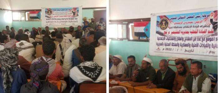 لقاء موسع لانتقالي المسيمير مع المشائخ والأعيان والقيادات المحلية والعسكرية والأمنية بالمديرية