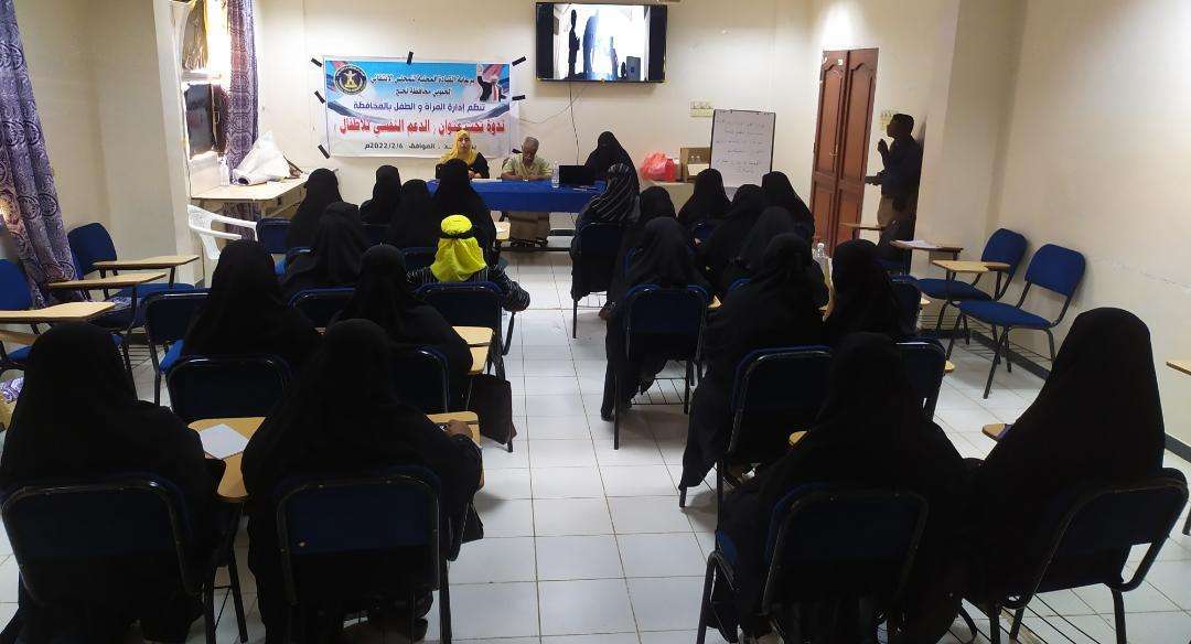 إدارة المراة بانتقالي #لحج تنفذ ورشة في الدعم النفسي.